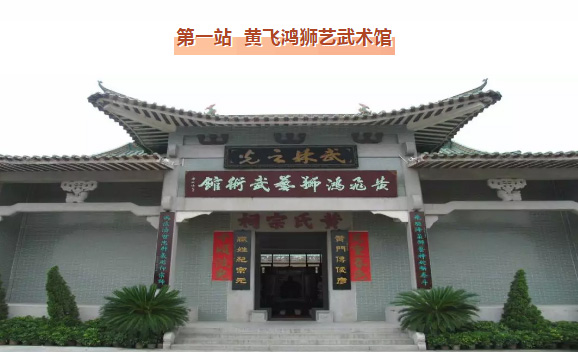 中国广东南粤名山---西樵山,人杰地灵,孕育出一代武林宗师黄麒英、黄飞鸿父子。为了弘扬黄飞鸿高尚的武德医德,一九九六年兴建了黄飞鸿狮艺武术馆。狮艺武术馆位于黄飞鸿出生地,市西樵山下的禄舟村,占地面积5.23亩,建筑别致,具有清末古建筑的风格。馆内分设有黄飞鸿故居;黄飞鸿史迹陈列影视室;宝芝林堂;针灸推拿;骨伤科堂;百草堂;关德兴纪念堂;其配套设施有武林的“广东十虎”名师像亭;黄飞鸿公园。 接下来欣赏精彩的佛山武术和醒狮文化表演。